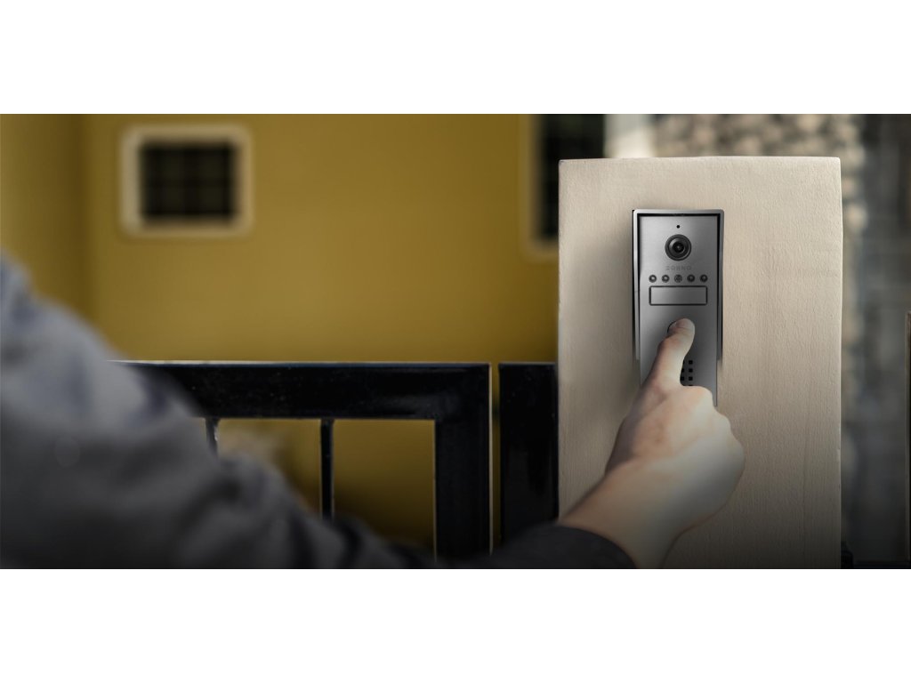 - vnější panel z hliníku pro povrchovou montáž je vybaven diskrétní kamerou s horizontálním úhlem pohledu 68°