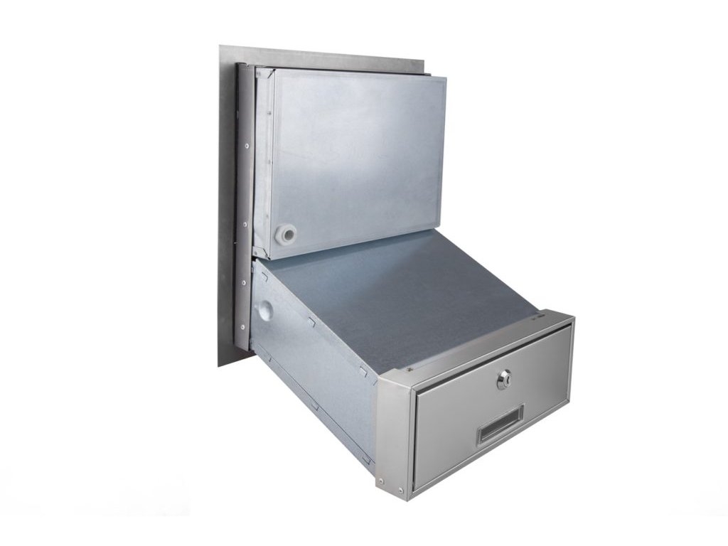 Zásuvka o šířce 250 mm je šikmá, dvoudílná a výsuvná. Zásuvka je poštovní schránka zabudovaná do sloupku nebo do zdi. Standardně je vyroben z žárově pozinkovaného plechu. Díky výsuvné zásuvce lze hloubku boxu nastavit v rozmezí 260-410 mm.