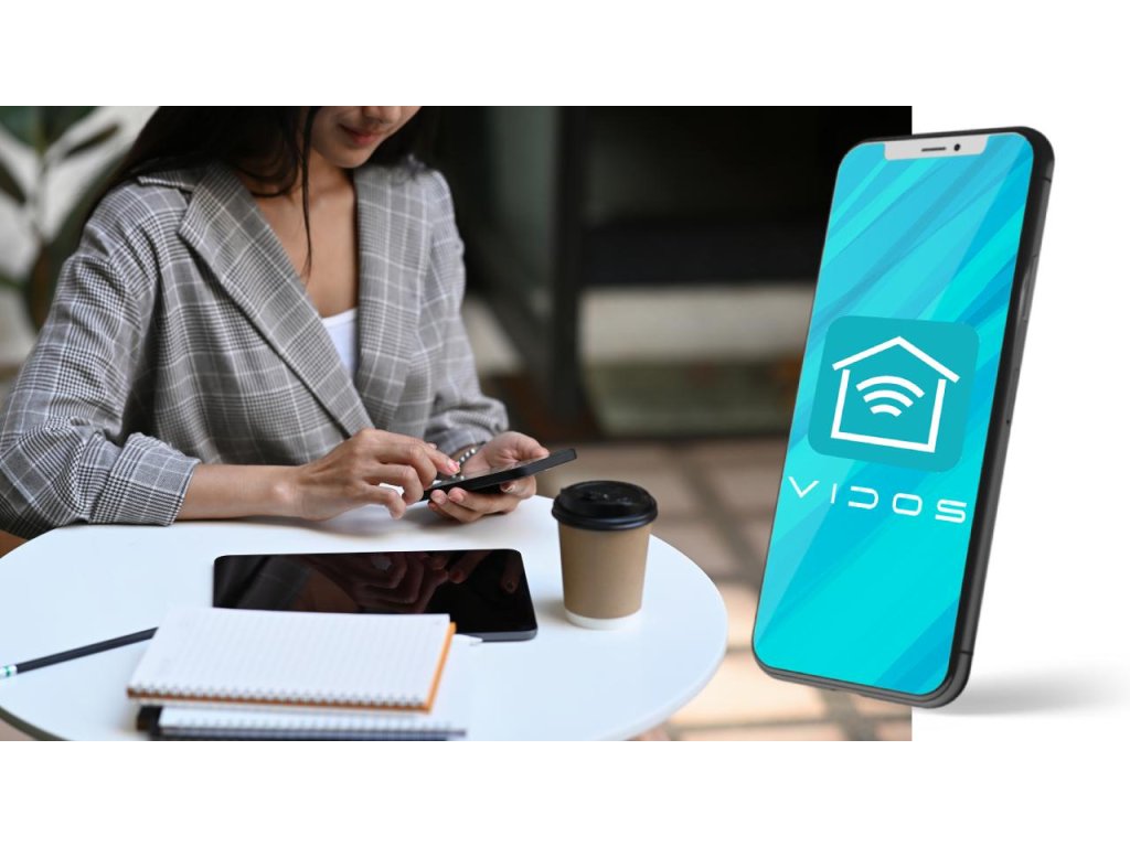 - Současné ovládání videointerkomu z telefonu je možné pomocí bezplatné aplikace Vidos X k dispozici v systému Android i IOS.