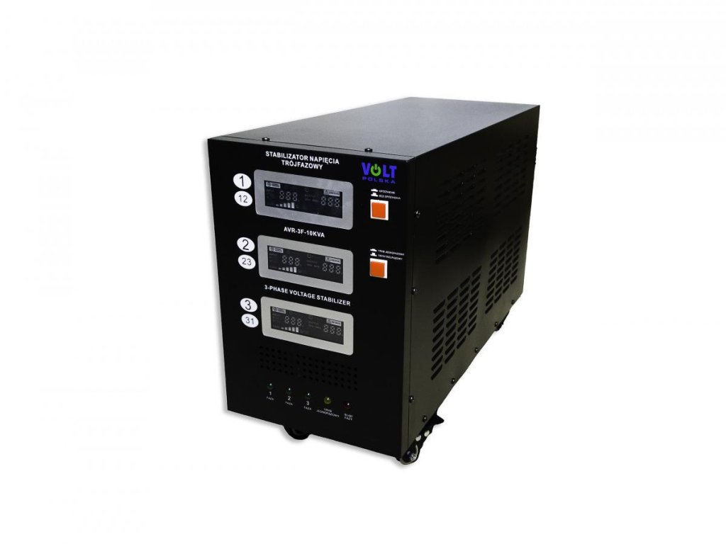 Třífázový stabilizátor síťového napětí AVR PRO 10000VA 3% 3F kombinuje funkce dvou zařízení: regulátoru napětí a přepěťové ochrany.