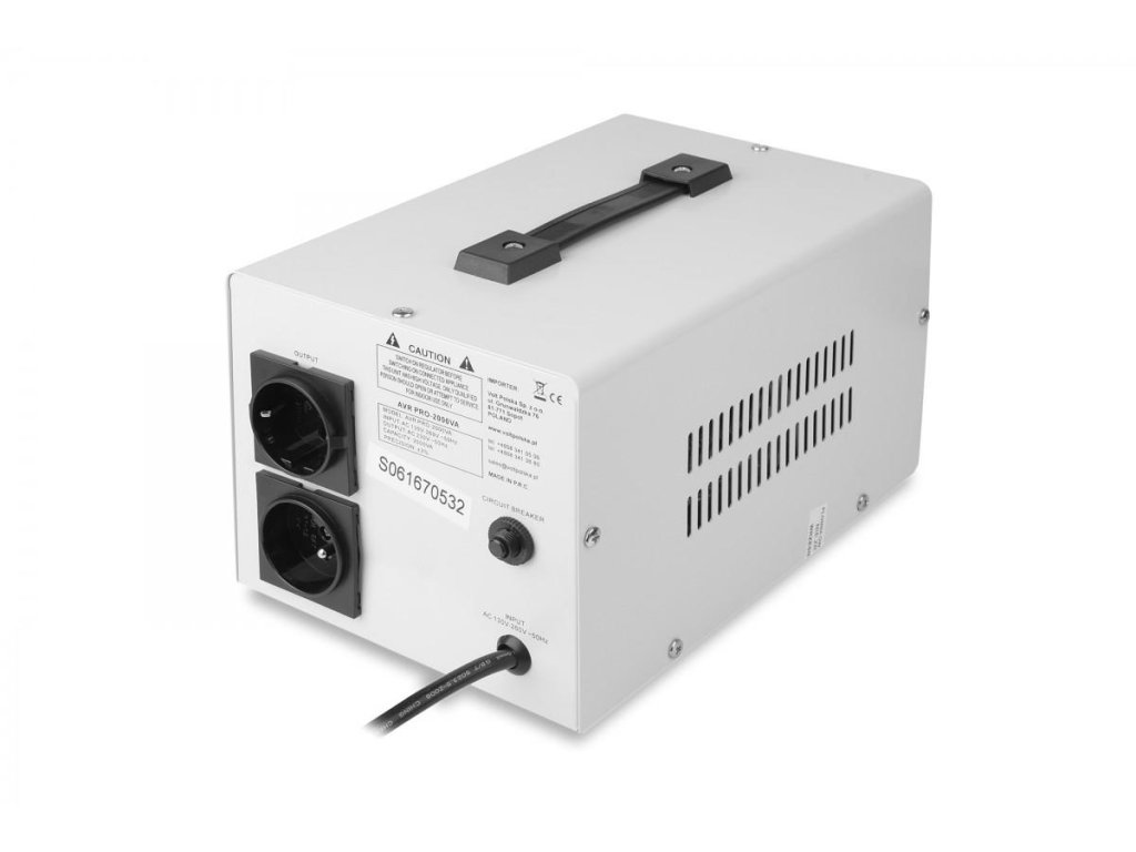 Stabilizátor síťového napětí AVR PRO 2000VA 3 % kombinuje funkce dvou zařízení: regulátoru napětí a přepěťové ochrany.