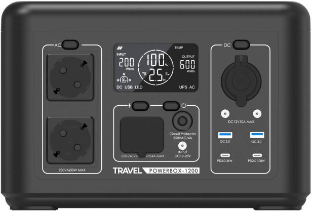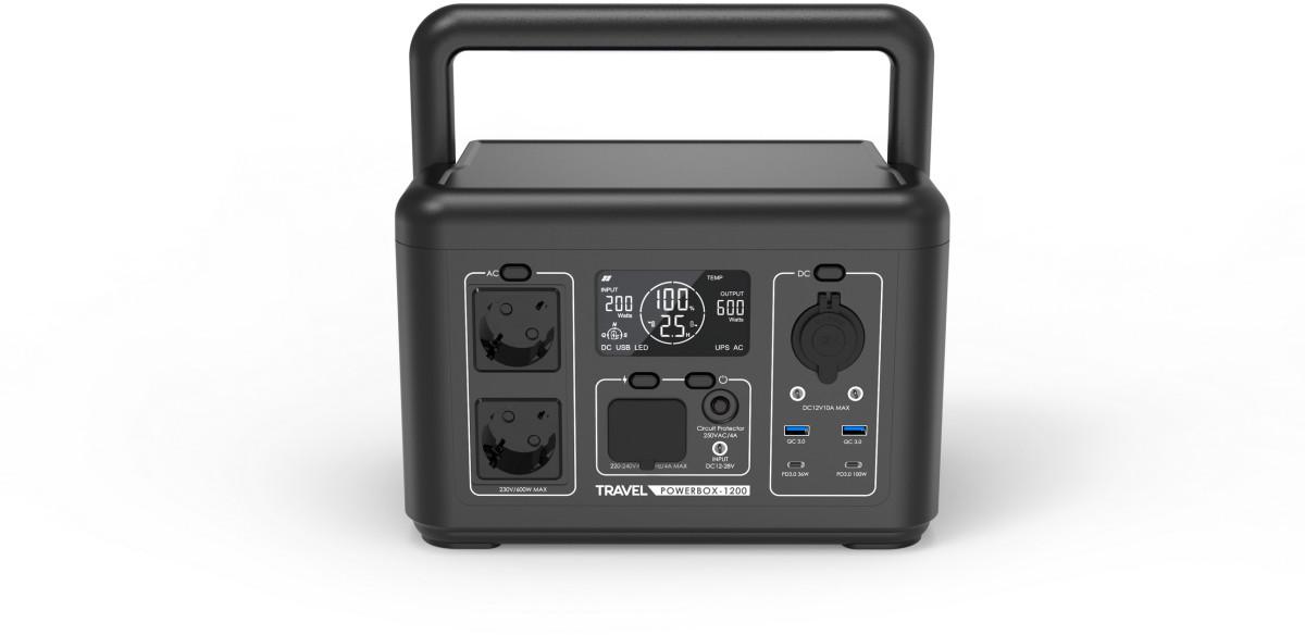 Přenosná elektrocentrála TRAVEL POWERBOX 1200 (600 W) je moderní zařízení, které umožňuje současné napájení několika spotřebičů, například bílé techniky, spotřební elektroniky nebo lékařských přístrojů. Je vybaven výkonnou 512Wh baterií LiFePO₄. Zařízení lze nabíjet pomocí solárního panelu, autonabíječky a ze sítě. Hodí se do interiéru i exteriéru, ať už na cestách, při kempování nebo na jachtě. Díky možnosti nabíjení ze solárního panelu je stanice bezpečná a šetrná k životnímu prostředí. Pracuje tiše a nevytváří vibrace ani nepříjemný hluk. TRAVEL POWERBOX 1200 (600 W) lze také použít jako spolehlivý nouzový zdroj energie při výpadku proudu.