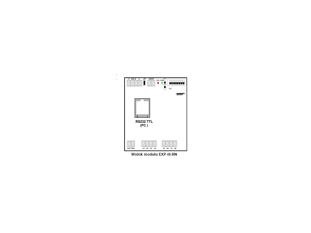 EXP-O8T-RN je výstupní modul spolupracující s ústřednou OptimaGSM/OptimaGSMPS.Modul zvyšuje počet tranzistorových výstupů (ovládání GND, Rdc 500mOhm) v systému o osm.