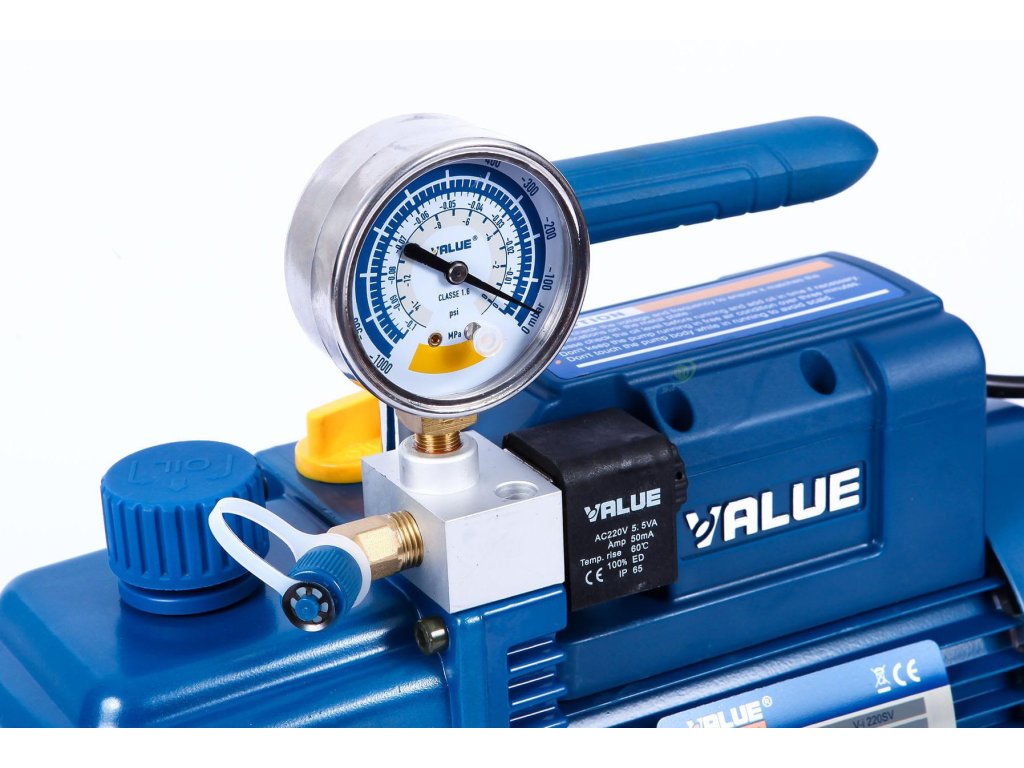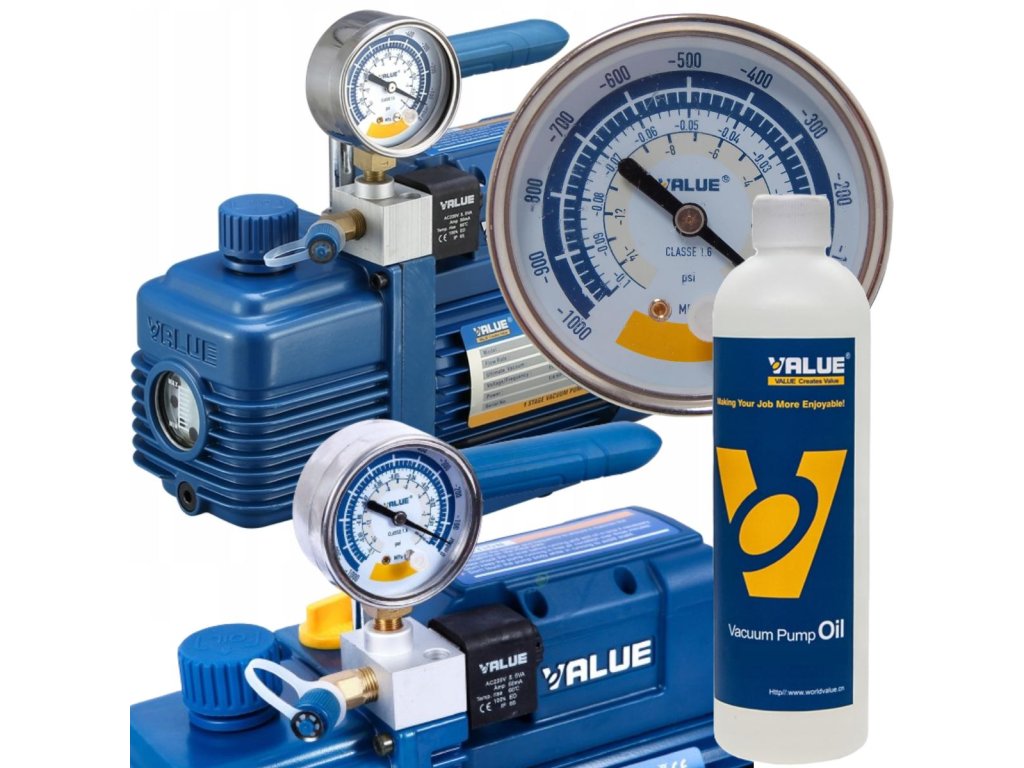 Vakuová pumpa pro použití s chladivy HFC a HCFC (např. R410A, R407C). Dvoustupňová vývěva pro použití v chlazení a klimatizaci.