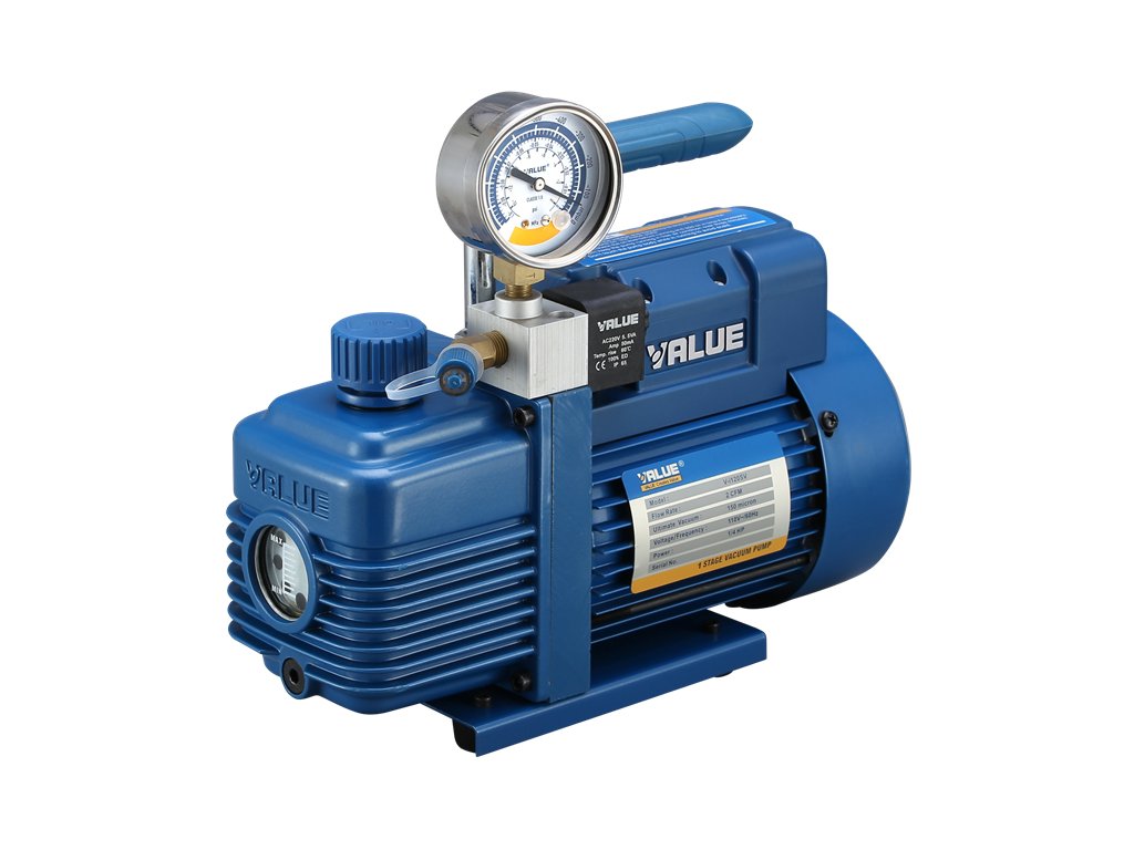 Vakuová pumpa pro použití s chladivy HFC a HCFC (např. R410A, R407C). Dvoustupňová vývěva pro použití v chlazení a klimatizaci.
