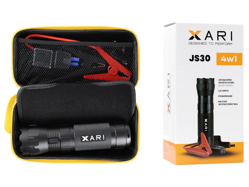Xari JS50 je multifunkční zařízení 4 v 1, které kombinuje funkce startéru, svítilny, powerbanky a bezpečnostního kladiva. Je navrženo s ohledem na funkčnost a odolnost a představuje ideální řešení pro řidiče, kteří hledají spolehlivost v každé situaci.
