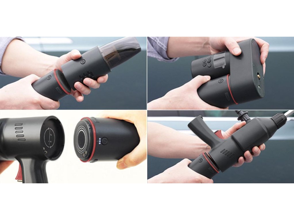 Powerbanka s výjimečnou kapacitou 15 000 mAh, která je součástí sady, je spolehlivým zdrojem energie, který funguje se všemi zařízeními v sadě. Můžete s ní napájet řadu zařízení v různých situacích. Pokud chcete umýt auto, stačí powerbanku zapojit do myčky a začít čistit. Potřebujete nahustit pneumatiku? Se stejnou powerbankou napájíte kompresor a rychle se s úkolem vypořádáte.