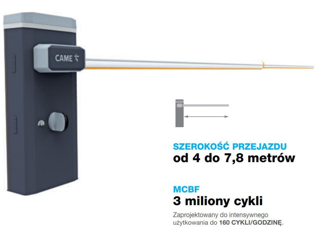 Závora je navržena pro přejezdy o šířce 8 m a intenzivní používání až 160 cyklů za hodinu.