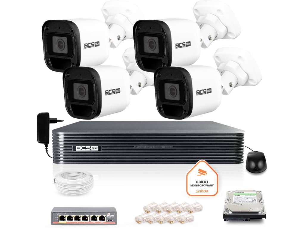 Základní sada IP kamer BCS 4x BCS-B-TIP12FR3(2.0) s 1TB HDD