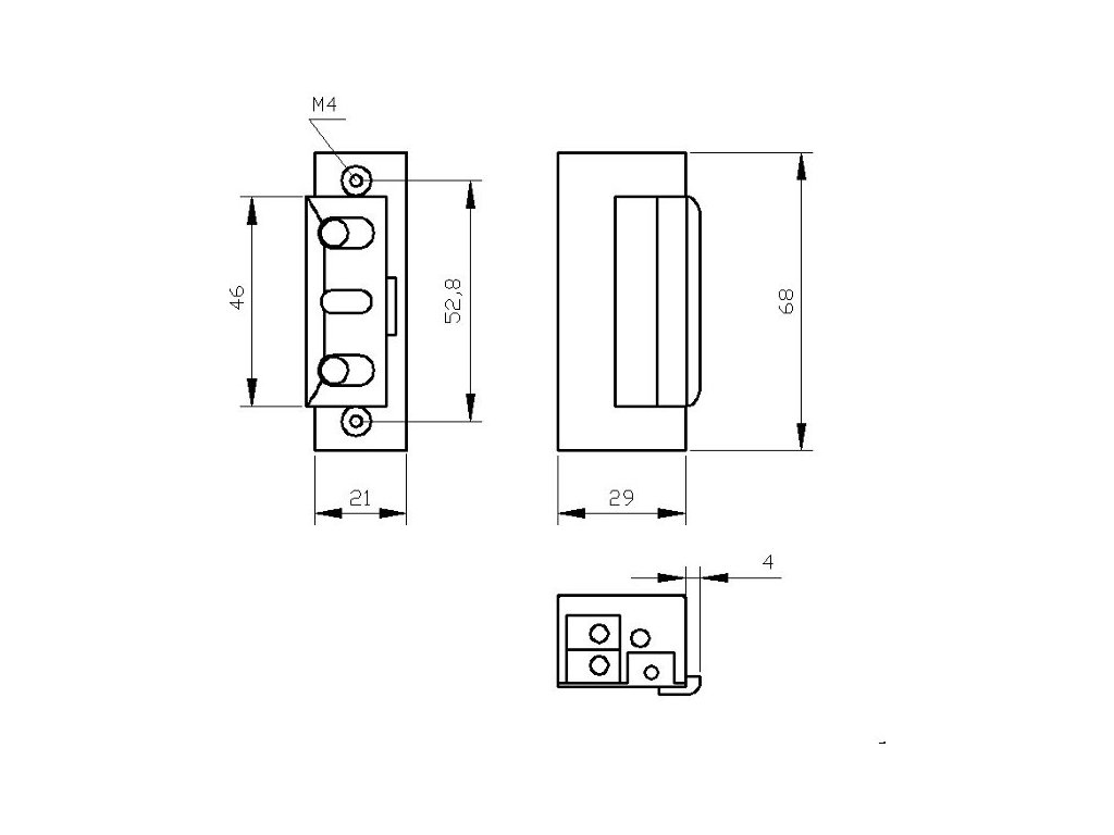 Západka R4 je určena k dálkovému otevírání levých a pravých dveří a dvoukřídlých vrat. Spolupracuje se západkou a šroubovým zámkem nebo západkovým zámkem. Je určen pro aplikace, kde je možné vyrobit zásuvku o rozměrech 22x30x69 mm. Úderník pracuje s tichým bzučením.