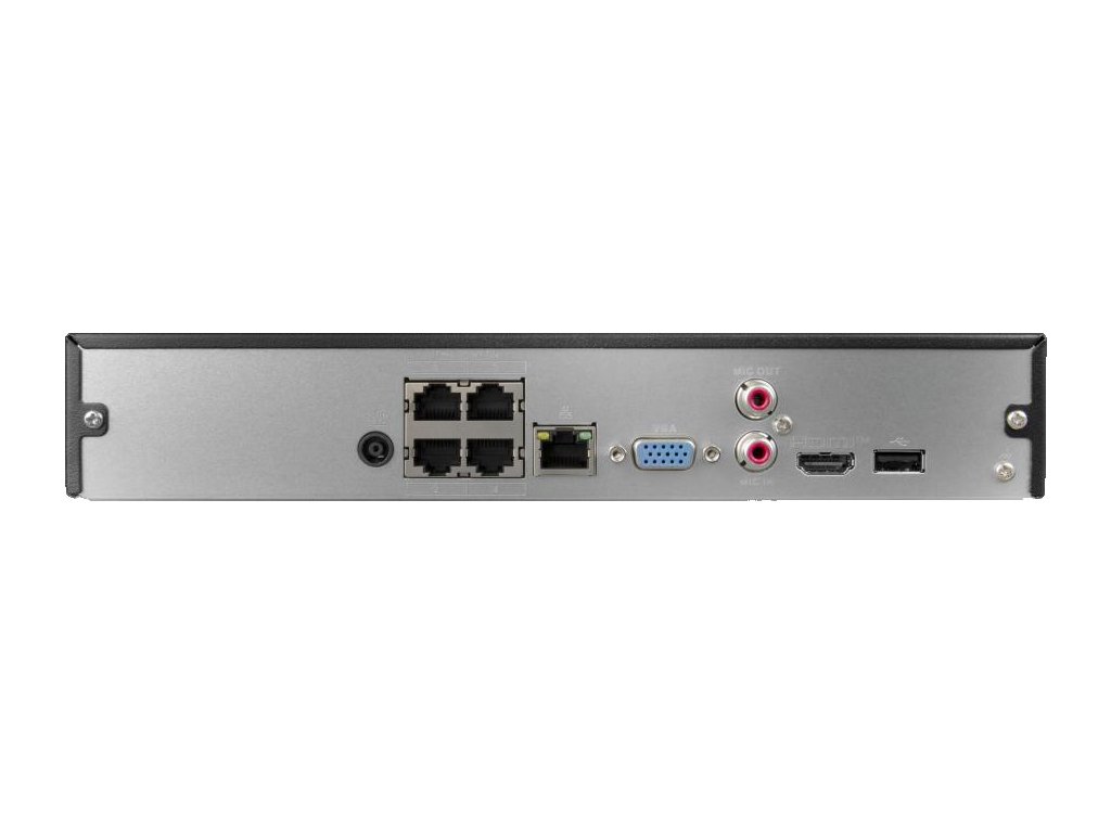 čtyřkanálový IP DVR od společnosti BCS Line. Přizpůsobeno pro práci s kamerami s maximálním rozlišením až 16 Mpx. Vestavěný 4portový přepínač PoE 36 W.