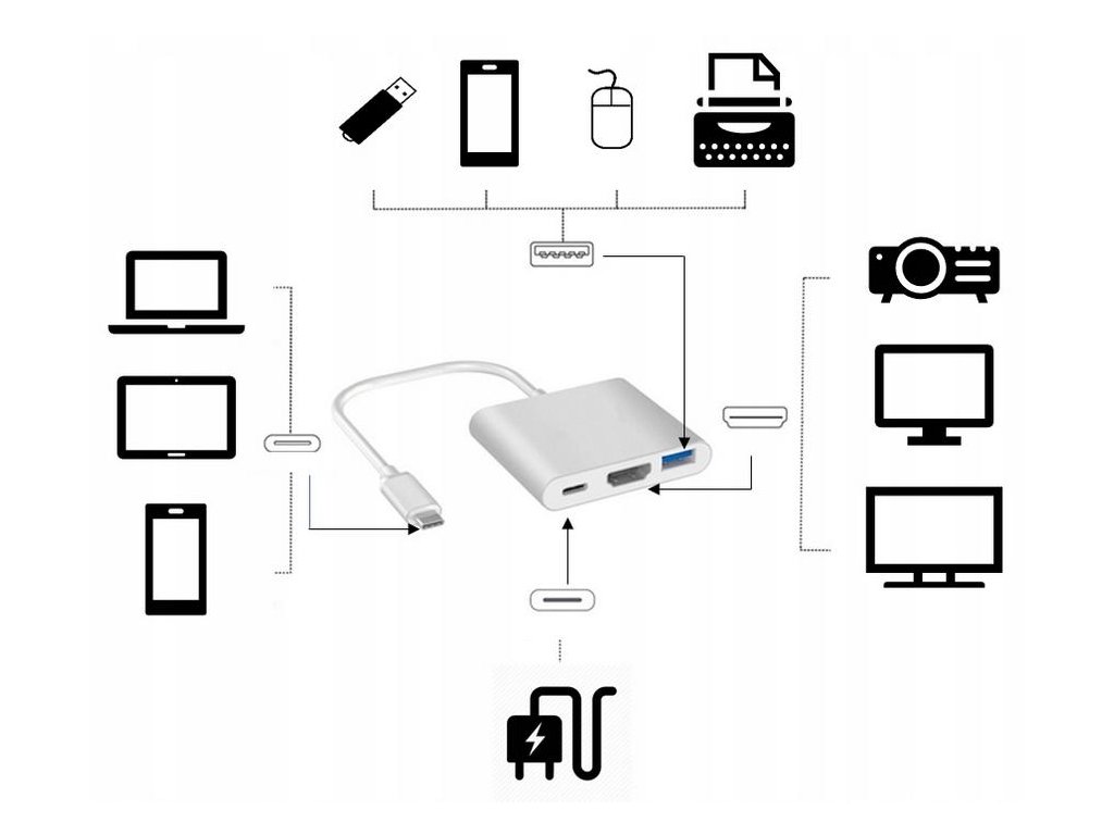 ZENWIRE 3 v 1 MHL HUB USB C HDMI 4K adaptér BYL-2008N