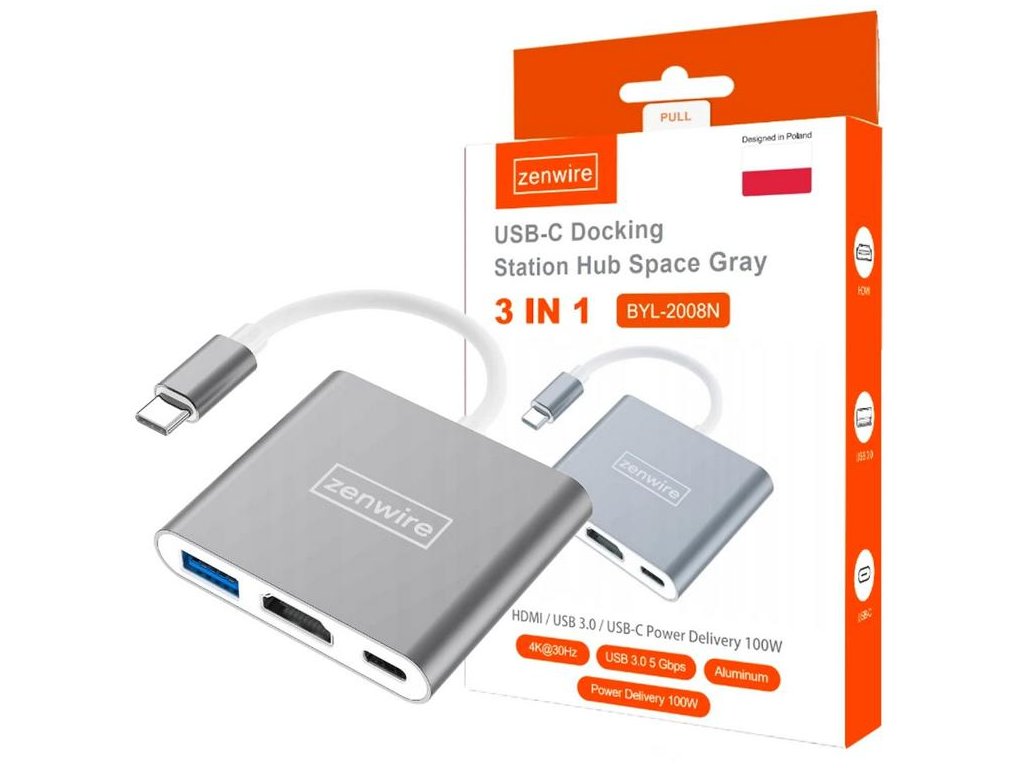 Kompaktní rozbočovač/adaptér USB-C od Zenwirekterý rozšiřuje jeden port USB-C v počítači, tabletu nebo chytrém telefonu o další porty - předevšímHDMI 4K,USB 3.0 iUSB-C s funkcí Power Delivery. To umožňuje připojit externí monitor, paměťovou kartu nebo nabíjet zařízení současně s přenosem dat.