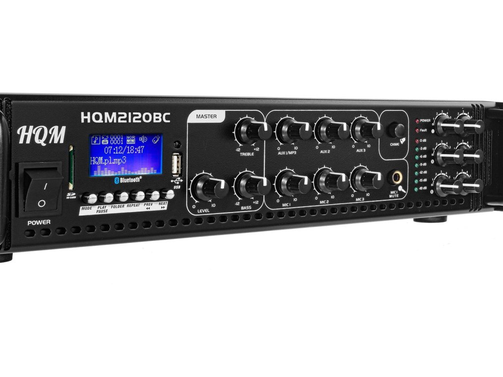 - Výkonný hudební zesilovač HQM2120 BC byl navržen pro nepřerušovaný přenos signálu ze všech použitých zdrojů zvuku.