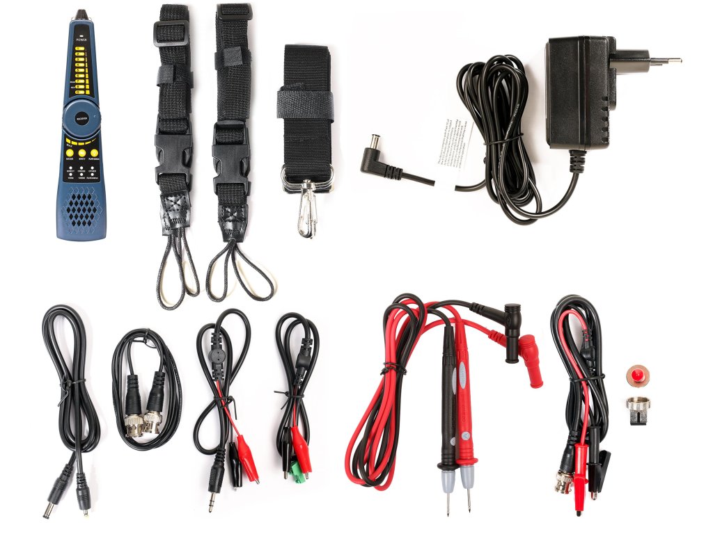 | Testování kabelů TDR: kabel BNC, síťový kabel, telefonní kabel, kabel RVV a výtahový kabel, délka a zkrat kabelu CAT 5/6. Rozsah měření 1,2 km (síťový port TDR) | ||
