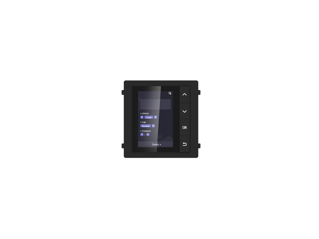 Zobrazovací modul HIKVISION DS-KD-DIS je nejmodernější řešení navržené pro spolupráci s videointerkomy a dalšími standardními panely Hikvision IP.