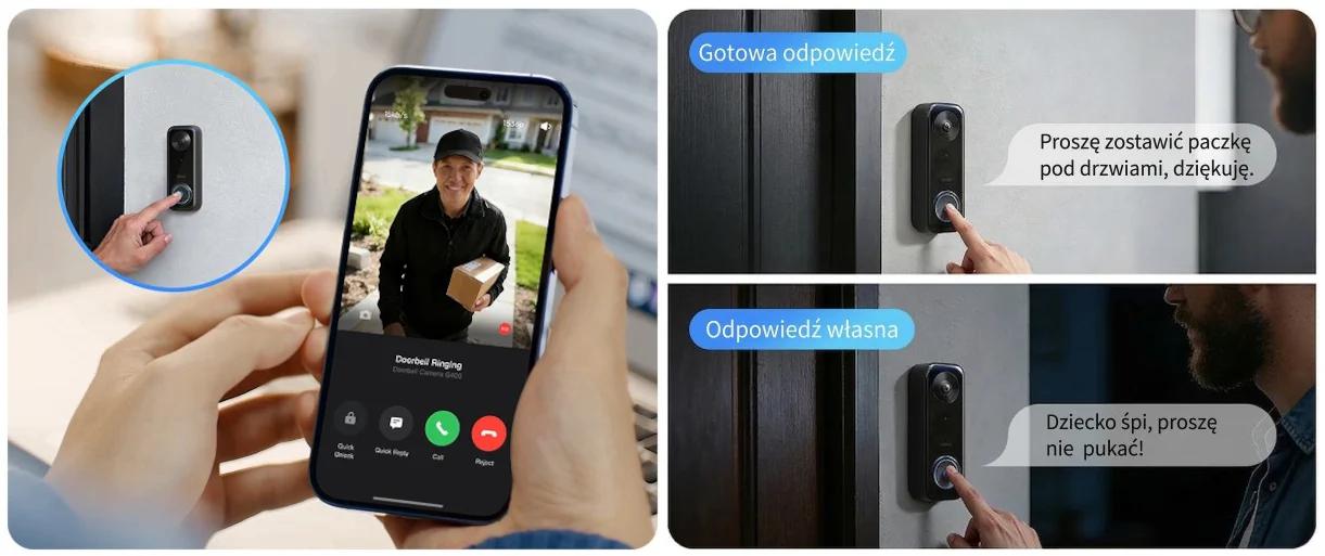 Zařízení nabízí funkci rychlé odpovědicož vám umožní obsluhovat hosty bez nutnosti hlasového hovoru. Můžete nastavit zprávy, jako například "Zanechte prosím balíček", což usnadňuje správu doručování, když jste zaneprázdněni. Videohovor umožňuje také obousměrný přenos zvuku, což vám pomůže komunikovat přímo s kurýrem nebo návštěvou prostřednictvím aplikace chytrého telefonu, ať jste kdekoli.